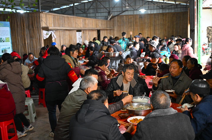 几口大锅被烧得热气腾腾,村民们将年猪合力抬上案板,进行一套完整的传统流程。大家说说笑笑,用最直接的方式,把一整年的辛劳、丰收的喜悦,化为一院子的喧腾。