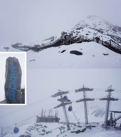缆车停在海拔4506米的景观处,眼前一片银白世界,零度以下的气温、不停洒在身上的雨雪、肆意刮到脸上的冷风……立时寒意逼人。然而,这一切完全没有冰封住游人的热情,相反,但见一张张漾开笑容的脸庞、一个个悦动轻灵的身形,争相排队与4506米的石碑合影,完全沉浸在成功挑战高山的欣喜里。