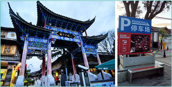 左:丽江古城南门 │ 右:景区直通车站