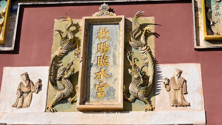 门上竖额上书“敕赐临水宫”五个鎏金大字。所谓横匾竖额,竖额是等级最高的,且必须要受到过帝王的赐封才可以拥有。