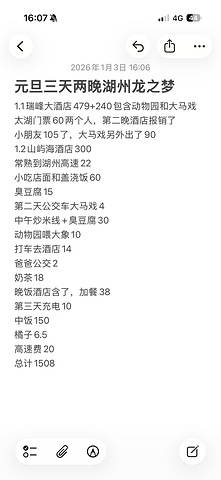 插曲:瑞峰因为客流量太大,跳电了无数次,因为每次跳电,都会重启电视机,影响睡觉。后来酒店赔偿了房券(节假日不可用),准备暑期去溯溪漂流使用,动物园可以二刷,演艺城应该不会去了,因为小朋友除了烟花、打铁花,表演都不感兴趣。来自游记2026年元旦湖州龙之梦(芝麻三岁6个月)