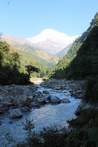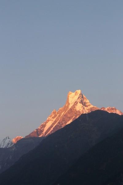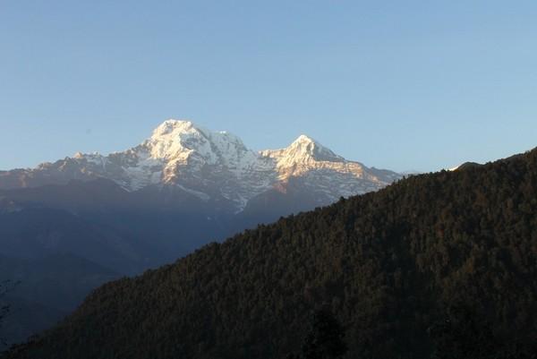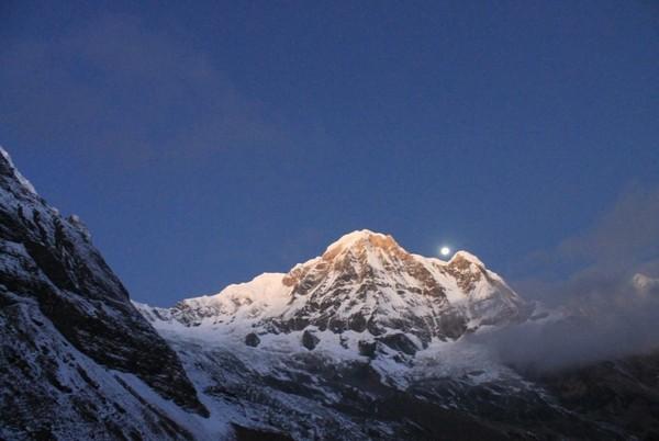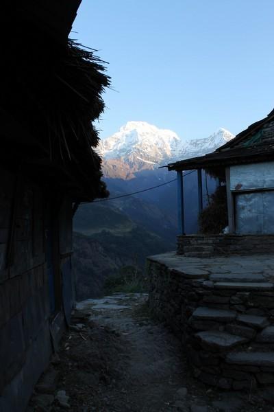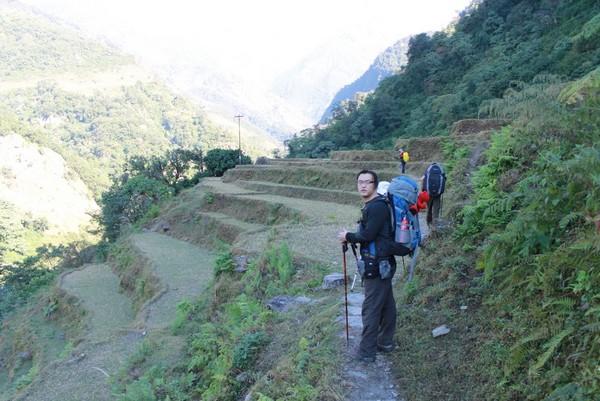 Chhomrong的环境还是不错的,我们到的时候还没有天黑,那里有个二楼的小平台,坐在那里看日落,看月出,非常的漂亮,那也是我第一次看山中的月出,当月亮爬上山头的时候会照亮旁边的雪山,很壮观,而且天空的星星也很亮,住在那里非常值得。这里可以免费洗澡,但是一定要早到,因为是太阳能的,如果超过6点就几乎没有热水了。