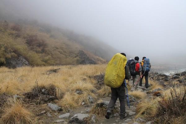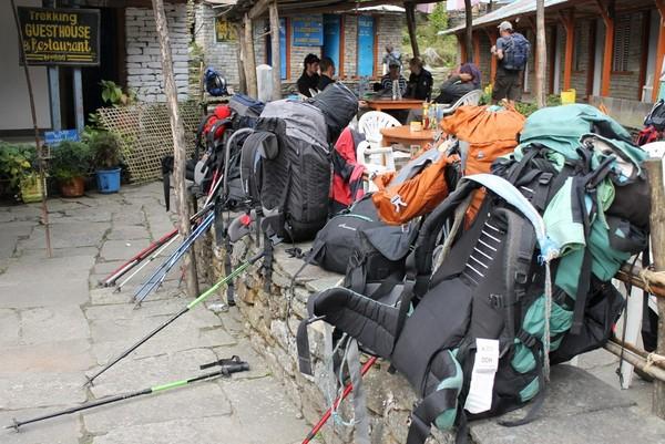 在himalayan hotel 以上就开始有取暖设施了,在旅馆的餐厅桌子下是一个取暖的地方,你可以把湿衣服放在那里烤,但是每个人要收100卢比的费用。