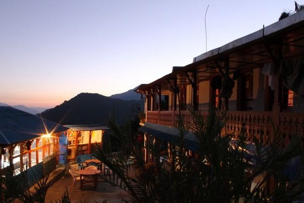 由于阴天山里的天黑的更早,我们又走了半个多小时夜路,而且下雨路上比较湿滑,还是有些危险的,在晚上5点半的时候我们到达了著名的himalayan hotel 这也是这一路上唯一一个叫hotel的旅馆,还是提前一天向导打电话帮我们预订的房间,据说房源比较紧张。