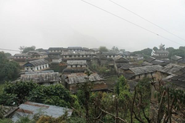 今天是下撤的第二天,早上8点开始出发,天下起了下雨,在小雨中走了两个半小时,在10:30到达了chhomrong,在那里喝了一大壶柠檬茶,只要135卢比,因为我们下撤选择了另一条路线,所以从chhomrong开始没有选择上山的路线,而是走另外一个方向,到nayapul下山。这一路都是下坡,虽然很快,但是对膝盖损伤比较搭,所以这个时候一定要注意膝盖的安全。下山的时候我们用了一个半小时,到达了ghandruk,这是一个很大的村落,很多的住户,而且我们在山间看到了一个排球场,很多当地的孩子在打排球,让我震惊的是,他们比赛的一招一式都是非常专业的,而且包括站位,比赛规则都不是胡乱来的。