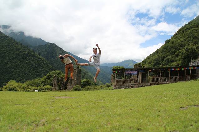 经朋友绍介第一次去孟屯河谷消署度假,还真不错。离成都很近,最重要的是那里空气清新,环境优美。通常我以为藏区离我们很遥远,但没想到离成都是那么的近,坐车2-3个小时就到了,当地人也会说他们是离汉区最近,离成都最近的藏族部落。从成都出发经成灌高速映汶高速到达汶川,在驱车到一个叫薛城镇地方后往右拐进入孟屯河谷。当时接待我们的是一家名叫——龙口山庄的旅游接待中心。当我走近这家藏家接持中心后彻底颠覆在我心中那些偏激想法。让我着实的明白了啥子叫56个民族是一家人~