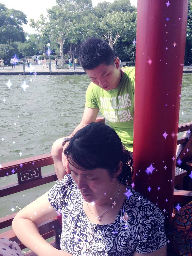 看哥哥和阿姨的表情多相似呀~~从西湖道三泉映月岛上有两种方式;一种150元包一只小船,1-4人,按船收费的,人工划船,在船上你可以喝喝茶聊聊天,欣赏西湖美景,时间大概一个小时左右,这个船不能给送到三泉映月上,只在周边逛逛风景;另一种就是我们选择的啦,按人收费,20元/人往返,负责给你送到三泉映月上,开船时间每10-20min一趟船,从早8点左右,开到下午4 5点停船,你可以随意在岛上逛,然后选择到达不同风景点的轮船,因为西湖很大,景点很多,这个方式的好处就是,从岛上离开时,你可以选择任意一个想去的景点,如断桥啦,白堤啦,天外天饭店啦,根据个人喜好吧~~
