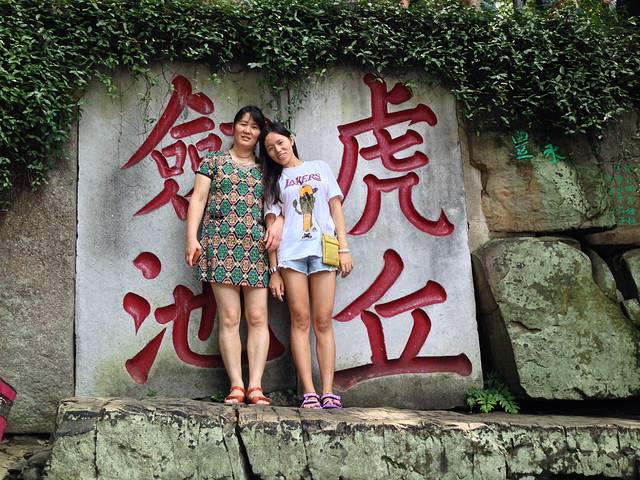 虎丘也和哥哥来过,是个留下很多美丽回忆的地方,这次和阿姨还有哥哥又一次来到这里,也是非常高兴的,一路蹦蹦跳跳O(∩_∩)O哈哈哈~~~。宋,苏东坡有云“到苏州,不游虎丘乃憾事也”。虎丘不太大,里面有一个云岩寺塔,已有1000多年历史,被誉为中国第一斜塔,很可惜因为年代太过久远已经不允许游客登塔了,只可以在外面看一下,个人推荐里面的照相师傅,照一张大的相片15元,给处理的板板整整儿,塑封好,想留下回忆的话照一张不错,第一次和哥哥一起来,还有这一次哥哥带我和阿姨一起来我们到照相了,留作纪念。(*^__^*) 嘻嘻……,此外还有一处剑池也是值得欣赏的有一处地方