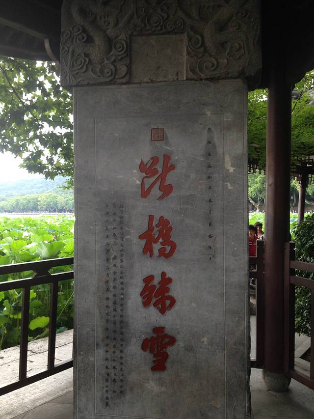 晴中见潋滟,雨中显空蒙,无论雨雪晴阴都能成景,又一次来到西湖依然觉得它美丽如夕,我觉得风景这种东西美不美丽,关键在于陪伴在你身边的人是谁(*^__^*) 嘻嘻……所以我这一路上觉得所有的景色都漂亮,这次能和阿姨还有哥哥一起来更开心。西湖区以苏堤和白堤的优美风光见称。苏堤和白堤横贯于西湖,把西湖分隔为西里湖,小南湖,岳湖,外湖和里湖五部分。白堤原名白沙堤,由孤山至段桥衔接成区。苏堤为苏东坡所建,横贯西湖南北。堤上有石拱桥六座。每当晨光初启,宿雾如烟,湖面腾起薄雾时,便出现""六桥烟柳""的优美风景,是钱塘十景之一。