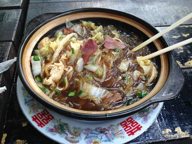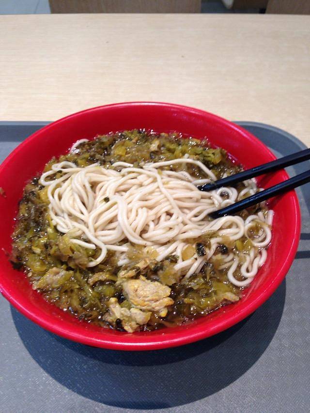 下火车后在站前小饭馆吃了一碗雪菜肉丝面,10元钱。