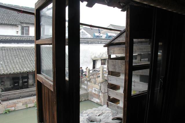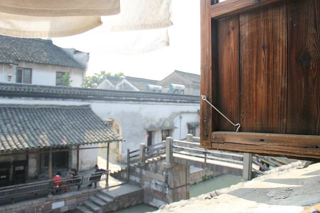 本来是想先去周庄转转的,后来发现竟然没有汽车票了。而且昨天实在太累,就懒了一会床。买了十一点多的汽车,大巴上就只有八个人,我坐的第一排左边的位置,旁边放着我的包,迷迷糊糊的就到了乌镇。