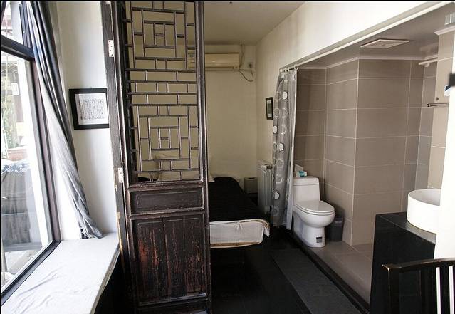 住的单人间,看起来也很不错。实际上那个大窗基本上要一直拉着窗帘,因为窗外就是一个小院,小院的桌椅和窗子大概只有一米,所以基本上是一帮驴友坐在你窗下聊天。QAQ