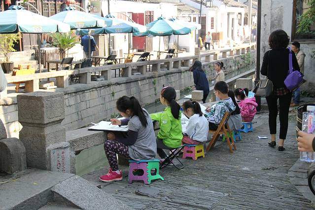 路边正在练习手绘的小朋友。在这边练习画画比我们那边幸福多了QAQ