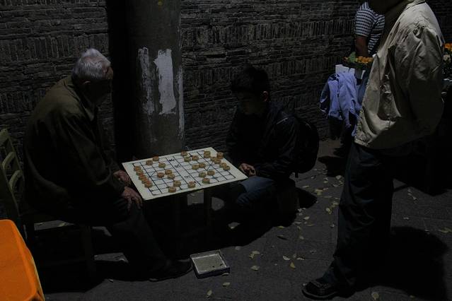 一个驴友在和大爷下象棋