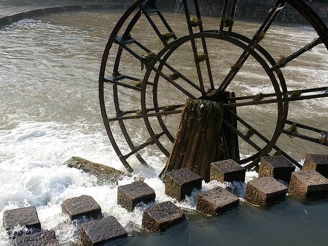 好大的水车,走过都会感受到哗啦啦的水雾。。