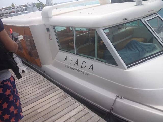 内飞航行大约1小时,终点站是一个名叫KDM的中转岛,在中转岛上的码头,阿雅达岛专属的快艇已经等着接我们~~一上快艇,就有小黑贴心地为我们分发冰镇的饮料和冰毛巾,瞬间扫去了一身的闷热,可以好好感受下快艇在无边无际的碧海上乘风破浪的感觉了~
