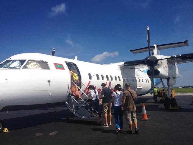 从北京出发的时候天气已经很冷了,穿着厚外套上的飞机,到达马累机场的时间是当地早上7点多,一下飞机就是一股热浪扑面而来,赶紧去洗手间换成清凉的夏装。机场里布满了各岛屿的柜台,还有好多小黑举着写着岛屿名称的牌子来回穿梭,我们正在眼花缭乱,举着“AYADA”牌子的小黑已经热情地迎上来,问清名字后便接过我们的行李(从这里开始就再也不用管自己的行李了,会有小黑直接将行李送到岛上你的房间里去的),带着我们来到机场外的内陆飞机候机室。