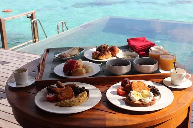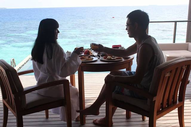 有句话说的真的很对,来到马尔代夫就是来享受生活的。阿雅达岛的宗旨也是如此,随处都有贴心的细节让人感受到人生美妙。比如水屋的大浴缸,隔着四扇落地玻璃门,直接面朝大海,黄昏的时候拉开玻璃门,舒服地泡着泡泡浴看海上晚霞,简直不要太惬意。又比如水屋隔餐厅较远,那么住到水屋的早晨就可以选择贴心的送餐服务,早起一睁眼,小黑就过来将一大桌美食摆在露台上让你对着印度洋美景吃早餐,简直不能更舒心。