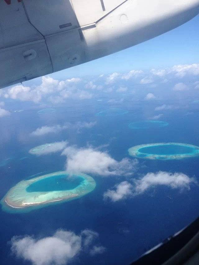 等待约半小时后,小黑进来通知我们内陆飞机可以登机了。阿雅达岛离首都马累比较远,上岛方式是内飞+快艇,不能坐水上飞机有点小遗憾,不过上了内飞之后才发现一样可以看到空中俯瞰海面上星罗棋布着一串串珍珠般岛屿的美景哦,只不过内飞的高度比水飞高,看到的岛屿就会比较小。
