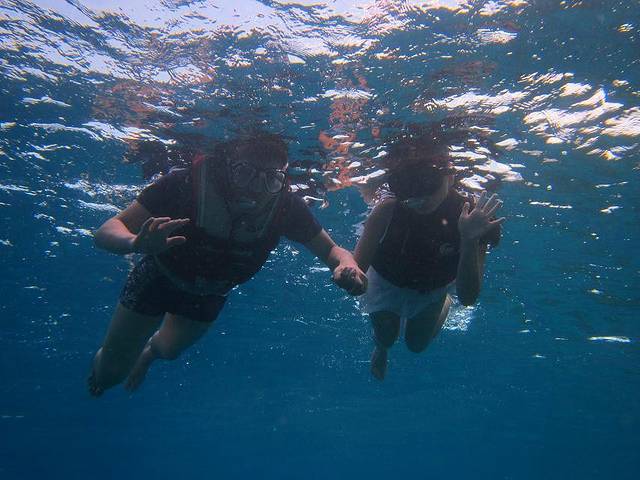 第二天上午我们预定了出海幸运看海豚+浮潜,同行一共六人,都是来度蜜月的中国小夫妻。话说阿雅达岛上的游客百分之七八十都是中国人,而且美女超级多!每到吃饭的时候看见满餐厅的美女我都好自卑%>_<%,还好除了用餐时间之外在岛上都很少遇见她们。。。这一天看来不是我们的幸运日,船长带着我们在海上转悠半天都没有发现海豚群,后来听说这几天出海的人都没有看到,于是我们带着失望和遗憾前往浮潜地点T-T。。。