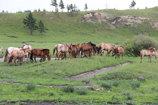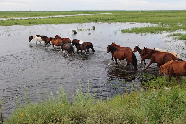最喜欢的一张,看到这群马停车在路边,老爸冲它们一声喊,这群萌物吓的往前跑,正拍到过河这一幕,清晨,呼吸着内蒙古清新的空气,整个人的精神面貌也焕然一新了。