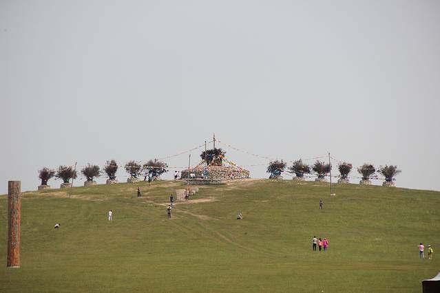 这个是传说中内蒙古最大的敖包,敖包意即" 堆子" ,也有译成“脑包”、“鄂博”的,意为木、石、土堆。就是由人工堆成的“石头堆”、“土堆”或“木块堆”。旧时遍布蒙古各地,多用石头或沙土堆成,也有用树枝垒成的,今数量已大减。原来是在辽阔草原上人们用石头堆成的道路和境界的标志,后来逐步演变成祭山神、路神和祈祷丰收、家人幸福平安的象征。简单说就是祭祀用,因此对于《敖包相会》这首歌费解。