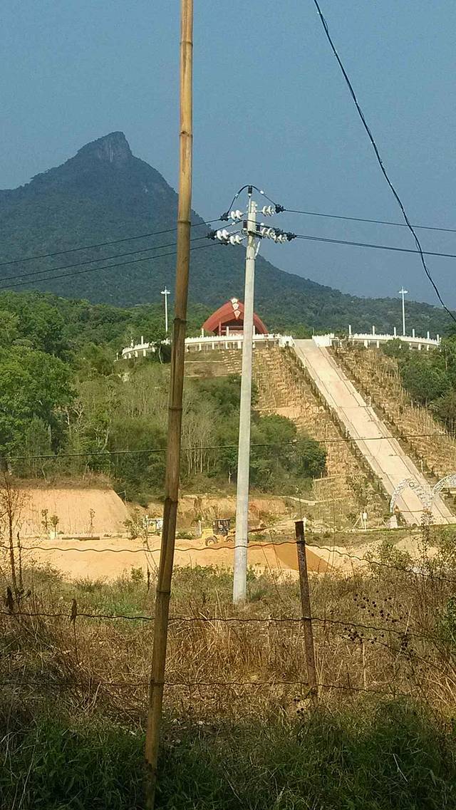 早上紧赶慢赶到海口汽车南站,坐上8:15去往五指山市的班车,走的是东线,有的攻略说什么东线看海,中线看山,骗子,大骗子,我怎么就没看到海。四个半小时的车程,到了五指山将近一点钟,午饭在车站附近的小馆子里随便解决,顺便问了老板,还能不能赶上去五指山漂流,老板说不可能,五指山到水满乡就要一个半小时,到哪基本都漂流完了。我们还不信,坐上班车去水满乡,两点半到的,一问当地人也说已经漂流完了,顿时心凉了,本来打算说第一天就去漂流,第二天去爬山,好了爬山是没希望了,所以先去宾馆办理入住,本来是在网上预订了,以为过去交钱就好,谁知道宾馆方面没有和艺龙网协商好,最后只能打电话协商,好不容易办好入住了,一看时间都三点半了,不想在宾馆无聊待着,就提议去看看热带雨林(就是漂流的起点),找了当地的摩托司机载我们上去(6个人,两辆车),司机在和我们闲聊的时候,强烈要求我们记他们的手机号,刚开始还觉得奇怪,后面就觉得这样做很明智。到了热带雨林景点,问了工作人员说,可以买票进入不过得在4:30之前出来,那时将近四点,本来是不想去的不过想着闲着也是闲着就买了六章团体票30/人,谁知道等了半天也没车进入景点(进热带雨林是坐电瓶车进入的),眼看没时间了,就去退了票,准备回去,当时旁边还有其他旅客,以为会有班车送回水满乡,可惜没有了,只能打电话叫之前的司机过来接,看着其他旅客还在焦急等待,而我们已经坐上车了,不禁感到先前记号码的明智啊!再说说我们住的旅馆,就是图片上的那家,真名就叫水满园,还差点找不到,环境还不错可以直接看到五指山,那棵大树就是宾馆的标志,叫什么神树,还有神奇的故事,蕴含美好祝福,然后还看到第二张图片上的寺庙,说是黎家寺庙还在修没装好,我们闲着走了一下,可惜太阳太大,还没走到底下,她们就决定回宾馆了。回到宾馆,打算去吃晚饭,尝尝当地著名的五脚猪啥的,到餐馆一看才发现,菜价太贵了,不是我们这种穷学生消费得起的,最后只能在超市里随便买了点祭奠了一下五脏庙,感觉超心酸。