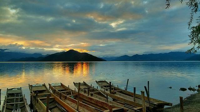3、坐猪槽船,赏湖光十色,客栈发呆,湖边散步,看清晨的日出,傍晚的日落。