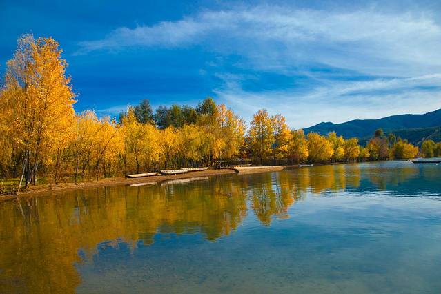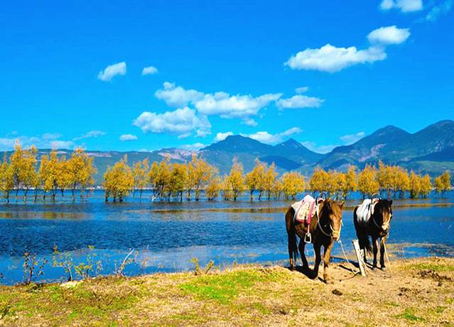 3、在古镇包车或骑车到拉市海,观鸟、划船、骑马,体验茶马古道,看天高云淡拍烂漫山花;滇藏线另一茶马古道的要道就是文海,6-8月的文海有大片杜鹃花和不知名的野花,去的路上还可以采摘各种野果,赏花胜地;