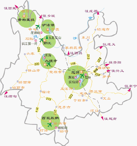 云南大概分为六条线: