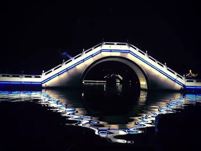 桥,灯光,倒影交相辉映