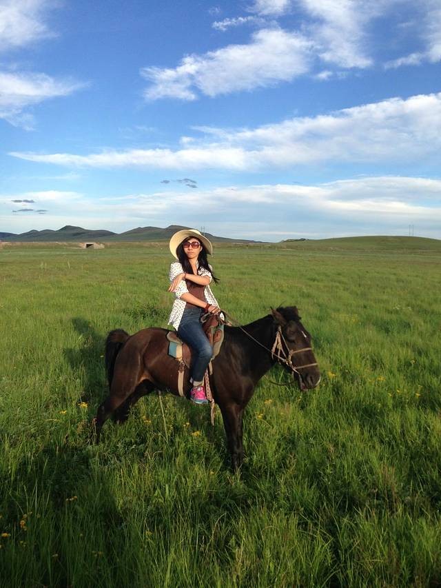 在去多伦的路上遇到的一个有很多马的地方 很便宜50块可以骑很久,重要的是风景真的美炸了!!真的是草原 远方的山 落日 白白的蒙古包