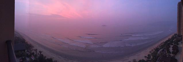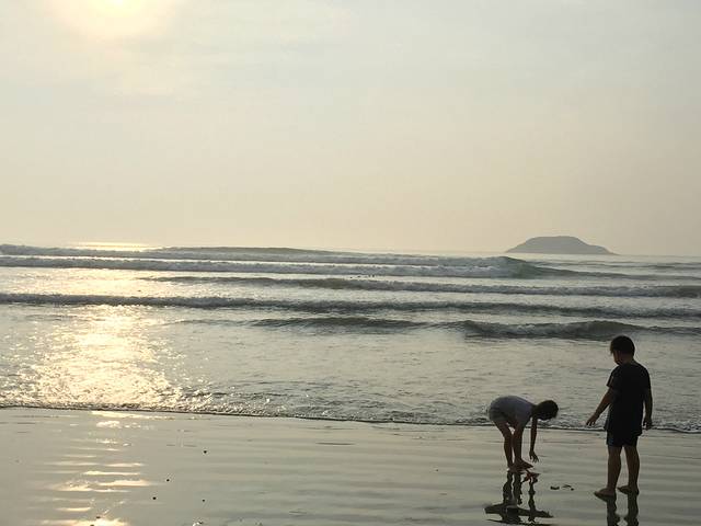 告别了湿热的广州,早九点自驾像惠东县的双月湾进发,全程200多公里,用时3小时多。到达目的地办完手续入住后,才觉得活了过来,头两天的劳累也随着观赏到美丽的海景而得以缓解。我们定的是无死角海景房,真的是很赞!安置好后就去祭五脏庙喽,离宾馆一公里开外有好几家海鲜店,我们先去了金海利,老板娘人很好说话,可以讲价。吃完,当然就是去下海啦,这天风平浪静,而且这里的海岸有个好处,纵深一百多米水深也只有一米多,很适合我这不会游泳的旱鸭子,哈哈!!晚上嘛,就是打打牌,听着海浪的声音睡觉喽,好不惬意呀~~~哦,有个小插曲,就是傍晚赶海,有很多小寄居蟹呦,好可爱好可爱,可以捉个过瘾。