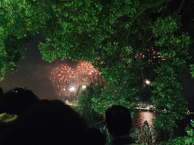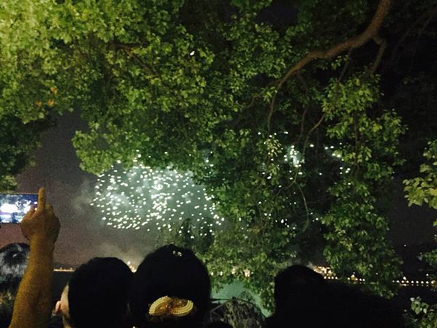 然后就走走走走去湘江边看烟火了,要说明一下的是,每周六长沙放烟火的时候,地铁6点以后在湘江中路和橘子洲就不停站,估计是为了控制人数吧,我们想着也不想那么早上橘子洲况且去了等烟火结束了也不知道该怎么回来,于是就在湘江的岸边看的烟火,只能说人暴多吓得我以为要和外滩一样发生踩踏了,长沙也蛮厉害的不是空气污染严重嘛还能放烟火,不过烟火真的超级好看,可惜岸边有树烟火并不是特别高有些会挡住,可能还是橘子洲上视角更棒吧,手机拍照片很难看拍微信的小视屏还是可以的~ 感觉那天游客都超级High的。对了,我们是沿着解放西路一路走过去的,路上还吃了长沙大香肠,看别人都是外面裹一层辣椒的可惜我俩彻彻底底的江浙人一点辣都吃不得,不过也很好吃的~