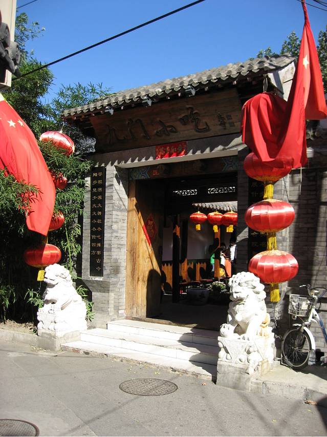 沿着后海北沿向西,一直到最西端,可见一小胡同“孝友胡同”,进胡同后再小拐一个弯便是“酒香不怕巷子深”的近几年名头颇响亮的北京小吃名店“九门小吃”。