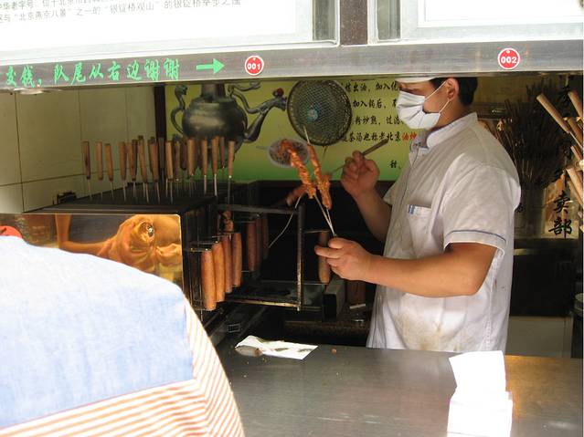 从鼓楼打回头,往南百余米路西边有一座牌坊,上书“烟袋斜街”,这名字您应该不陌生吧。从这进去,两边都是小店铺,橱窗里摆满了花样繁多的各式时尚的小东西,引得人们不停地出此门又入彼门,忙得不亦乐乎。走到巷子的尽头,立刻就又进入了一个新的美食天堂。什刹海的美食世界从银锭桥开始,开头的第一家就是重量级的大家:烤肉季。它的西边紧挨着两家小门脸:“天下第一臭”和“松记炸灌肠”。