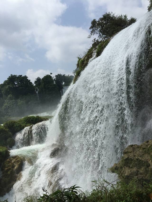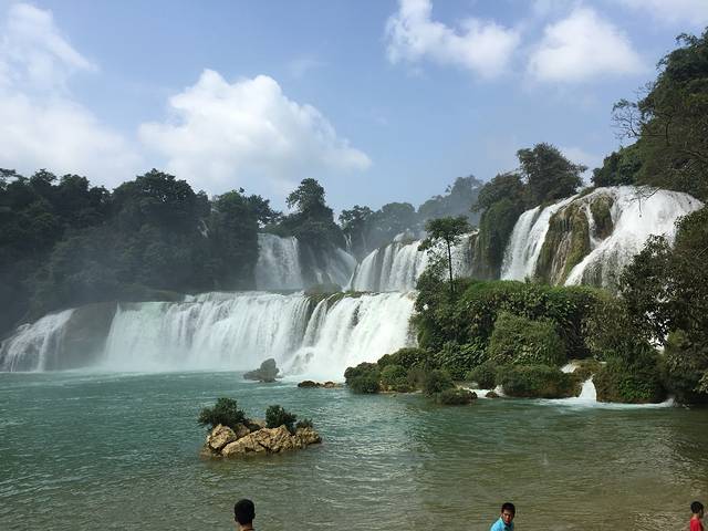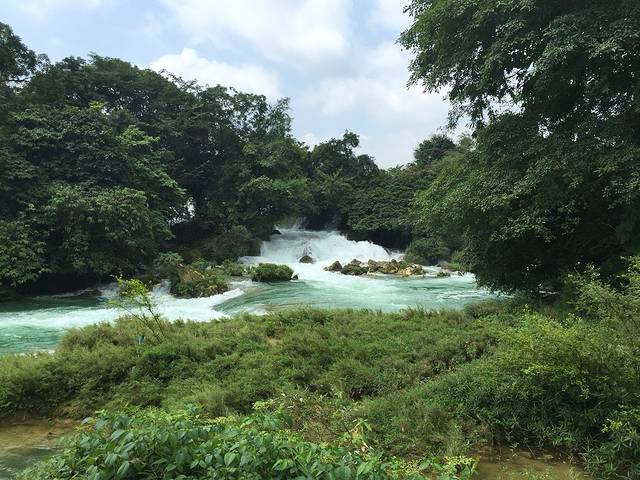 早上八点多拼了一辆面包车从明仕出发,经过一个多小时的车程到达德天。为了规范车辆停放,在景区入口六公里外设了售票大厅,并配有停车场,游客需先购买门票并转乘景区专车到大入口处。由于是国庆长假,私家车密密麻麻停满了整个停车场,景区也早早的堆满了人,那个远观瀑布的地方根本就无法照相,只好放弃!沿途走到瀑布下游近距离观看真的太美了,那一刻真的想留在这个地方住下来!一直在那呆了很久才往上游走,没想到去上游的路上风景更美!景区里全是越南商贩在买一些小东西,都没有喜欢的,就买了一颗黄瓜和几袋酸奶,味道很一般!