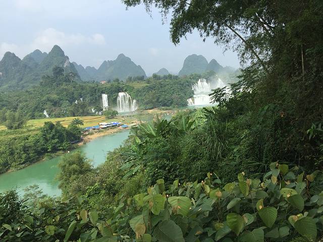 入口处远观瀑布,右边是中国德天瀑布,左边是越南板约瀑布