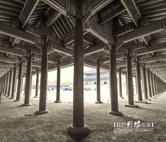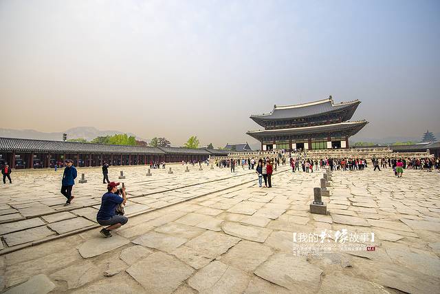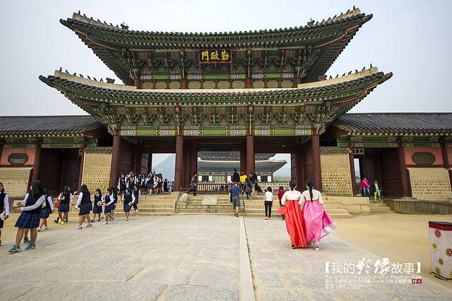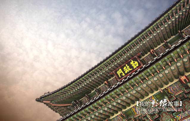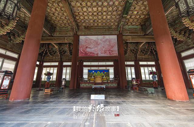 景福宫的正殿勤政殿是韩国古代最大的木结构建筑物,最雄伟壮丽,是举行正式仪式以及接受百官朝贺的大殿。高宗同治六年(1867年),勤政殿由兴宣大院君重建,在花纹华丽的两坛月台上,冠以两层重檐,显得雄伟壮观。