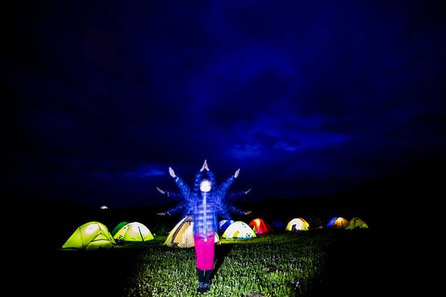 好久没有组织过腐败的线路了,又是在一个夜黑风高的夜晚,突然灵光一闪就决定带小贱人们来这一块风水宝地沾花惹草,此次行程的强度史无前例的巨大,下车后要在草原平地上重装徒步200米才能扎营,身体虚弱的孩子脚干都走的打抖抖了。