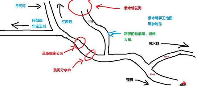 理论上来说这里完全是不需要攻略图的,但是由于我路痴病犯了,导致大巴车开过了转进俄木塘的路口,所以特此手工制作了一张小地图,希望世上再也不会出现我这样的傻叉了。这也能走错路