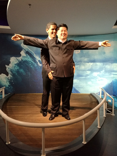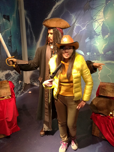 虽然工作人员会叮嘱不能碰蜡像,但也会告诉你蜡像旁边的帽子等道具都是可以借来玩角色扮演与心中的偶像蜡体合照的,而且他们也会帮忙拍照。