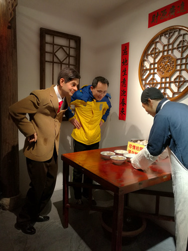 蜡像馆内分五个区域,入门便是福州传统民俗文化区,用竹编做灯笼的老婆婆,打肉燕做鱼丸的师傅;再往里是社会政要区,体坛娱乐一线明星大咖区、国内影视区、卡通漫画区。其实总体面积不算太大,蜡像也不算多,但胜在个个形象逼真,细看之下连指甲,毛发等精细处都能以假乱真。