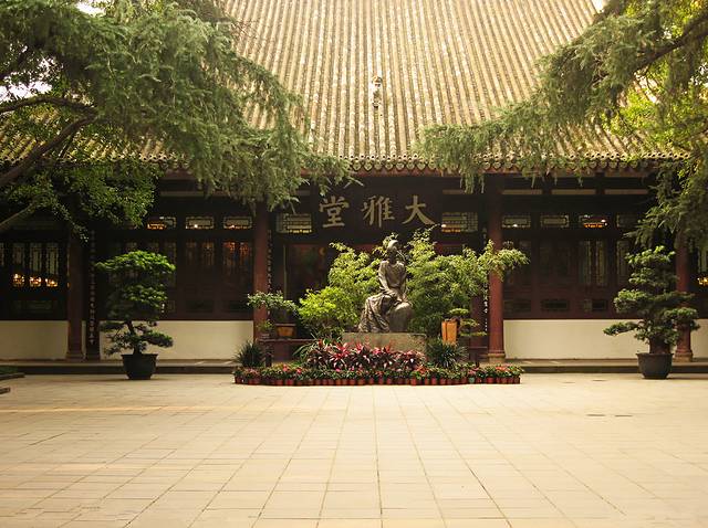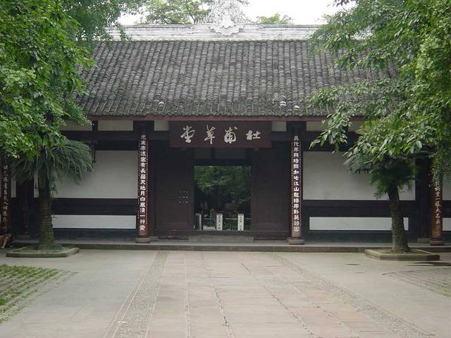 园林是非常独特的“混“少陵草堂”碑亭合式”中国古典园林。其中大廨、诗史堂、工部祠3座主要纪念性建筑物,坐落在中轴线上,幽深宁静。