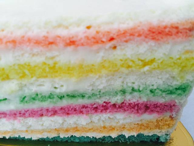 阳光晒醒的早安,午后的阳光正好,甜蜜的彩虹蛋糕,美味遇见彩虹的幸福刚刚好。