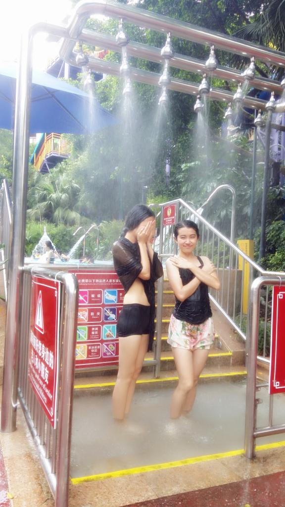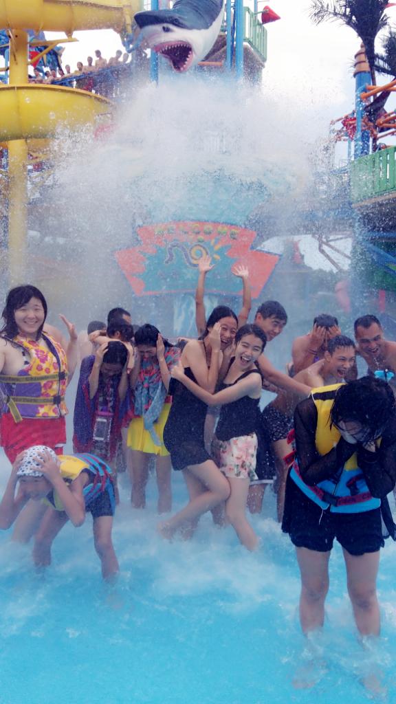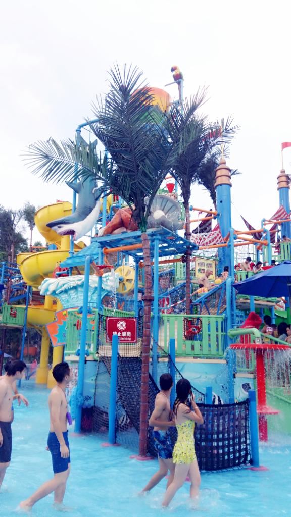 4.夏威夷水城。这里可就不需要排队了,人数也不限哈。水城中间有两个大水桶,储满水之后就往下倒。大水桶从高处往下倒水的感觉,冰冰凉。此外,这里还有几条单人的滑道,躺在里面转几圈滑下来也挺好玩的,