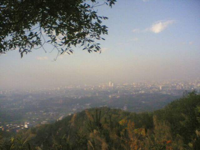 带着这个小小的疑问,我们继续往前走。沿着山口一直往前爬上去,发现爬完了一座山峰,眼前又会出现另外一座山峰,这真的有点意思。好在这里的山峰都不算太高,也都不太陡,爬起来不会太吃力。当你从准高峰的九旬山爬到最高峰的百岁山的时候,你心里可能将会对一山更比一山高这句话,有更深刻的体会了。一登上郁郁葱葱的百岁山,你将会看到更加开阔的世界,你会看到大半个梅城的风景。可能是由于这里的环境保护得很好,我发现这里的天空特别地蓝,蓝得那么清澈,那么好看。