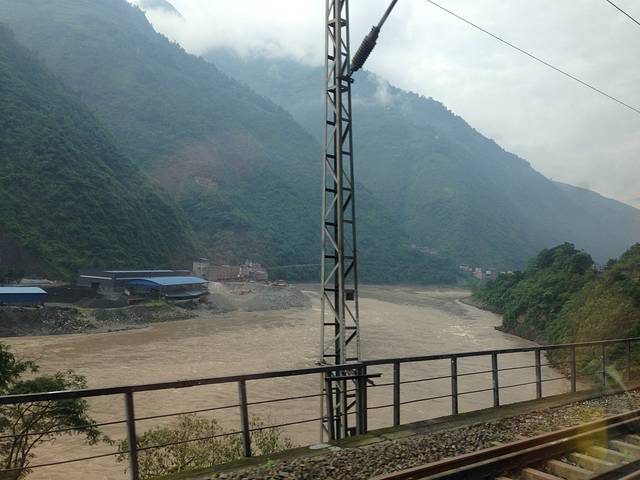路过的山谷 湍急的江水滔滔东去