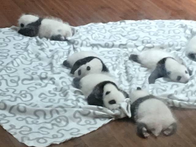 一群未成年的熊猫宝宝 打成一团。