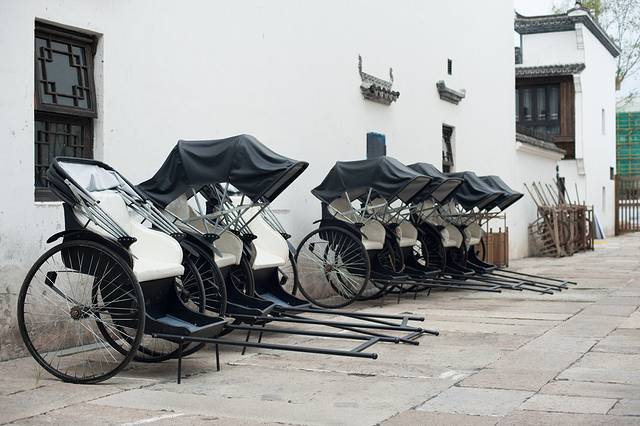 在路边还看到了一排黄包车,坐在上面,伴随着车夫一声吆喝,便拉着你朝街那头跑去,一切放佛拉回了那个时光里。